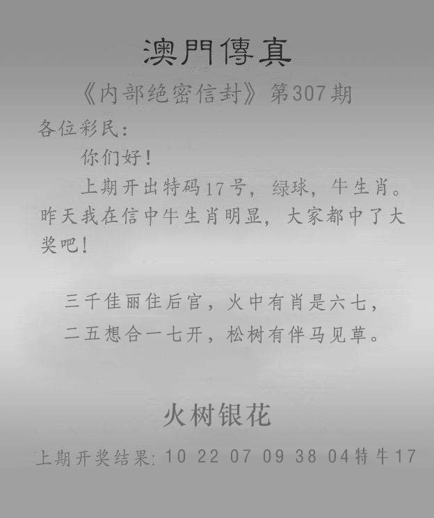 307期: 澳门博彩皇 『澳门信封图』已更新